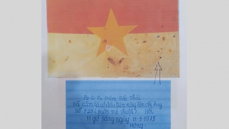 (VOVWORLD) - Le 11 mars 1975, à 11 heures du matin, le drapeau de la libération flottait sur le toit du quartier général adverse à Buôn Ma Thuôt, marquant une victoire décisive pour la troupe Bac Thai lors de la campagne des Hauts Plateaux du Centre. Ce drapeau, témoin d’un tournant historique, porte encore aujourd’hui l’inscription manuscrite du soldat Hoàng Phuc Hung. Cinquante ans plus tard, l’histoire de ce drapeau reste gravée dans la mémoire de ce vétéran, qui la raconte toujours avec fierté et honneur.