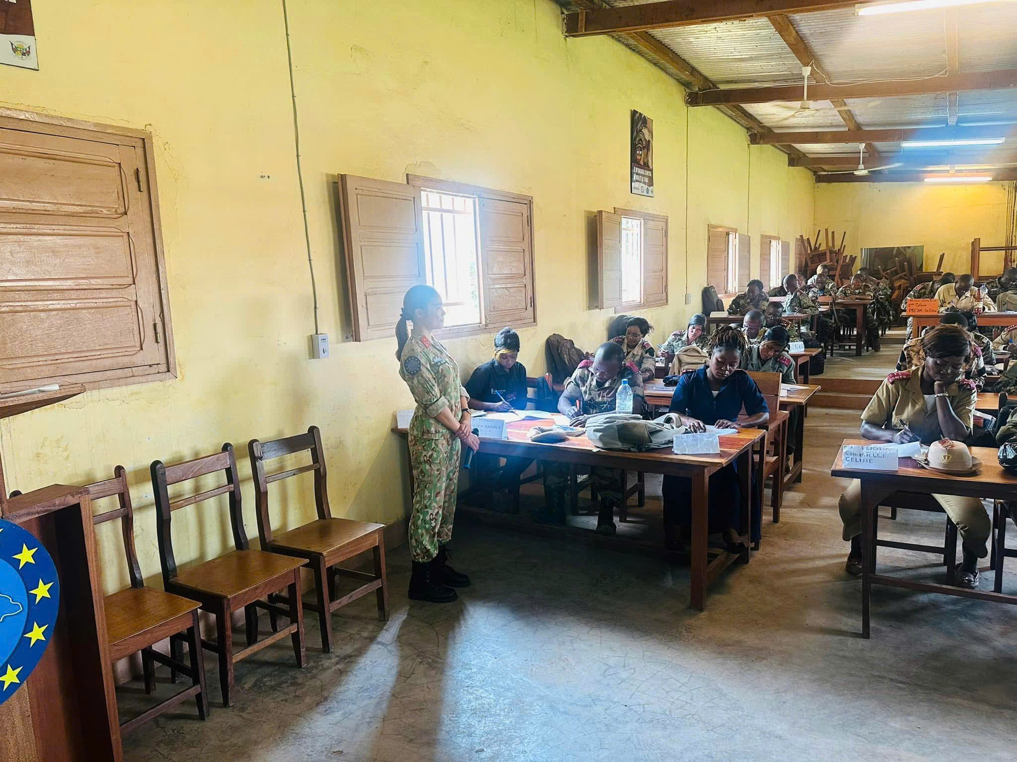 La colonelle Vu Thi Liên dispense un cours de français à des militaires centrafricains, dans le cadre de la mission de formation européenne.