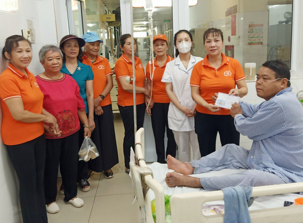 Nguyen Thi Lien and some members of the Thien Tam group visit a patient at Quang Ninh General Hospital. ( Photo courtesy of Nguyen Thi Lien) |