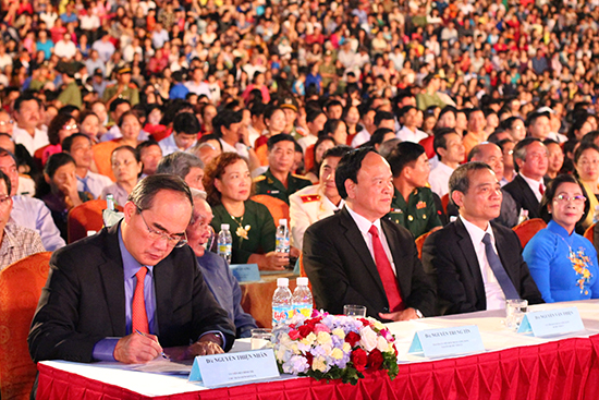 Yang mengahadiri acara peringatan ini, ada Nguyen Thien Nhan, Anggota Polit Biro Komite Sentral Partai Komunis Vietnam, Ketua Pengurus Besar Front Tanah Air Vietnam dan banyak pemimpin berbagai kementerian dan instansi pusat.