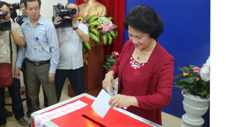 Ketua MN Vietnam, Ibu Nguyen Thi Kim Ngan telah melaksanakan hak warga negara-nya di kabupaten Vinh Phuc, distrik Ba Dinh, kota Hanoi.