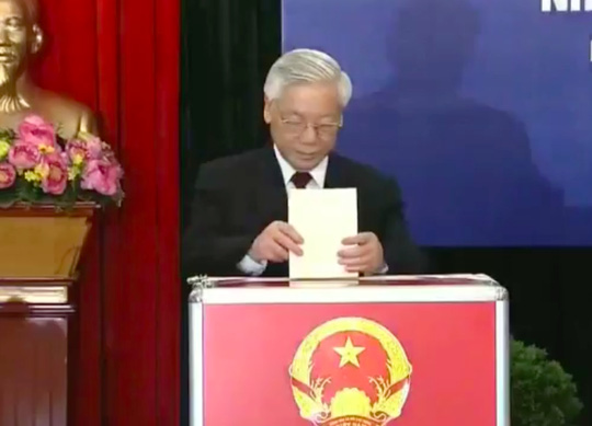Sekretaris Jenderal (Sekjen) Komite Sentral Partai Komunis Vietnam (PKV), Nguyen Phu Trong telah melaksanakan hak dan kewajiban warga negara-nya di satuan pemungutan suara No.3, kabupaten Nguyen Du, distrik Hoan Kiem, kota Hanoi. Segera setelah memberikan suara, Sekjen Nguyen Phu Trong telah menjawab interviu kepada kalangan pers. Sekjen Nguyen Phu Trong mengatakan: “Saya dan para pemilih lain menginginkan agar