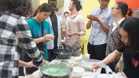 (VOVWORLD) - Kue Klepon merupakan sebuah kue kecil, kenyal dan halus, dengan gula merah di dalamnya dan parutan kelapa yang menutupinya. Ini adalah masakan tradisional Indonesia. Anda bisa mudah menemukan kue Klepon di banyak tempat di seluruh negeri puluhan ribu pulau ini. Hari ini, marilah Anda Sekalian bersama dengan para pemuda di Kota Hanoi ikut serta dalam kelas membuat kue Klepon Indonesia. Kelas diadakan pada sore hari (10 Juni) di Pusat Promosi Budaya Indonesia, Umah Indo!