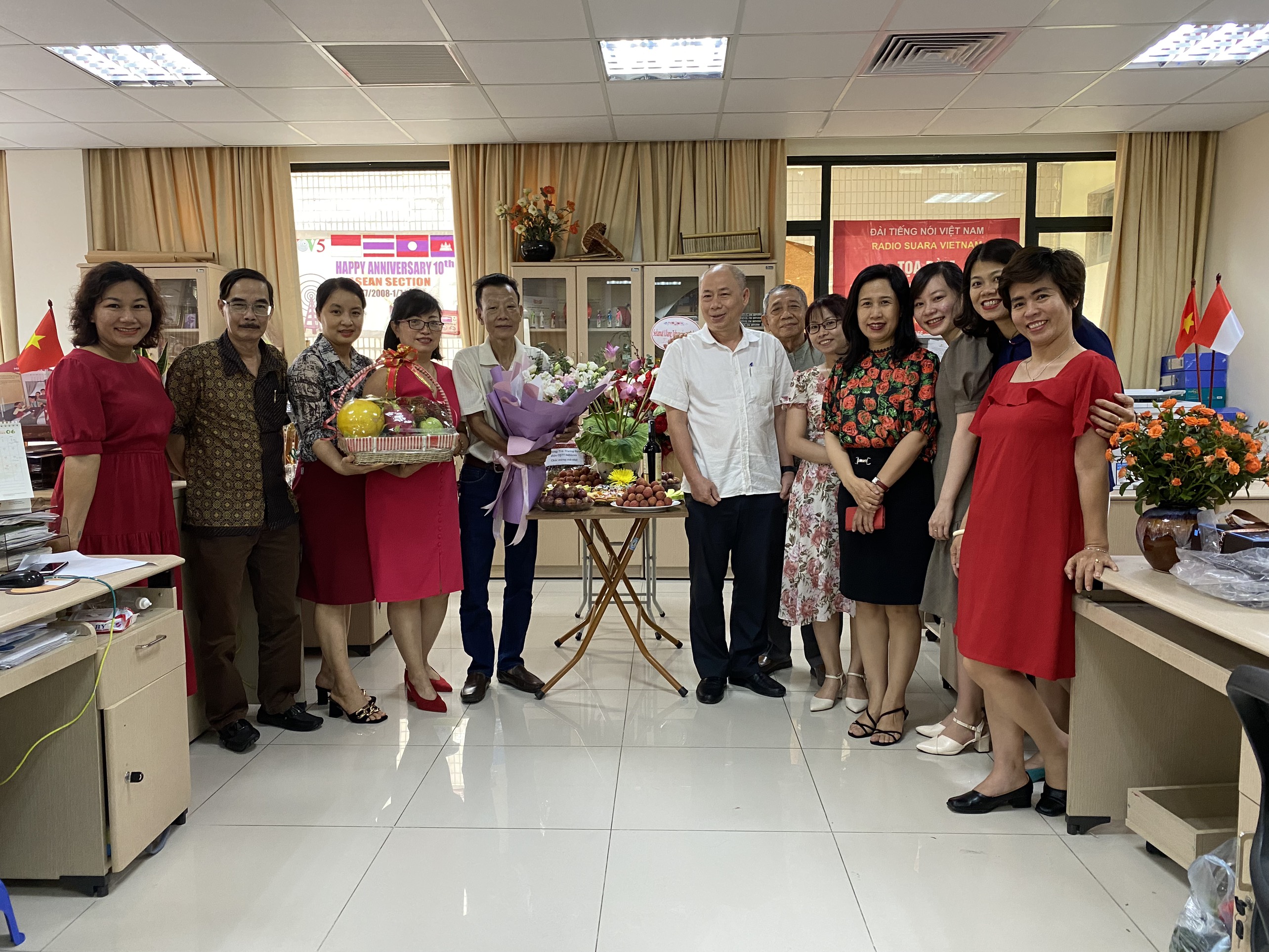 Para pemimpin VOV5 mengucapkan selamat ultahk ke-55 Program Siaran Bahasa Indonesia (Foto: VOV)