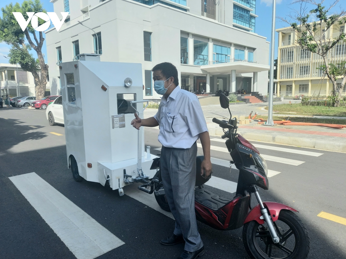 Saudara pendengar, kabin yang membawa pasien Covid-19 merupakan produk ciptaan magister Dang Xuan Thuy, dosen Departemen Mesin, Institut Politeknik Da Nang digunakan untuk membawa pasien Covid-19, pasien F1 atau para pasien yang diduga terinfeksi Covid-19 dalam rumah sakit untuk menjamin virus tidak disebarkan ke udara. Kabin tersebut didesain monolitik dan terbuat dari aluminium, mirip ruang mini bertekanan dengan tinggi 2 meter dan berat mencapai 80 kilogram. Kabin tersebut dilengkapi sistem penyemprot disinfektan, exhaust fan, tangki oksigen, lampu, dan lampu peringatan, roda yang terhubung dengan sepeda motor listrik, maka mudah untuk dipindahkan di sekitar kampus pusat medis atau rumah sakit. Kabin tersebut telah digunakan di Pusat Medis di Distrik Lien Chieu, Kota Da Nang. Di masa depan, kabin tersebut akan terus diperbaiki teknologinya demi memenuhi kebutuhan penggunaan, dengan tepat waktu melayani rumah sakit, pusat medis, serta transfer ke berbagai unit yang membutuhkan.