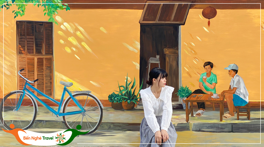 Wisatawan berpotret di desa mural Hon Thien (Foto: dulichbennghe.vn) |