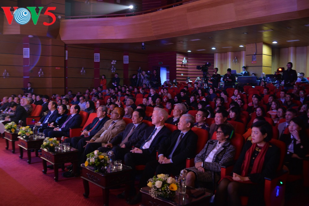Deputi Menlu Vietnam, Nguyen Quoc Dung dan Dubes Indonesia di Vietnam, Ibnu Hadi menyampaikan hadiah pertama kepada penulis Phi Ba Khoat