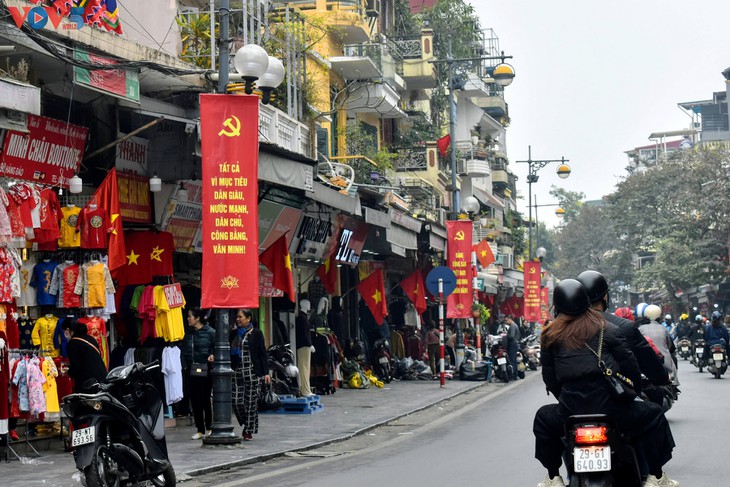 Banyak jalan di Ibukota Ha Noi telah dihiasi dengan spanduk, slogan, dan poster untuk menyambut Kongres Nasional XIII PKV.