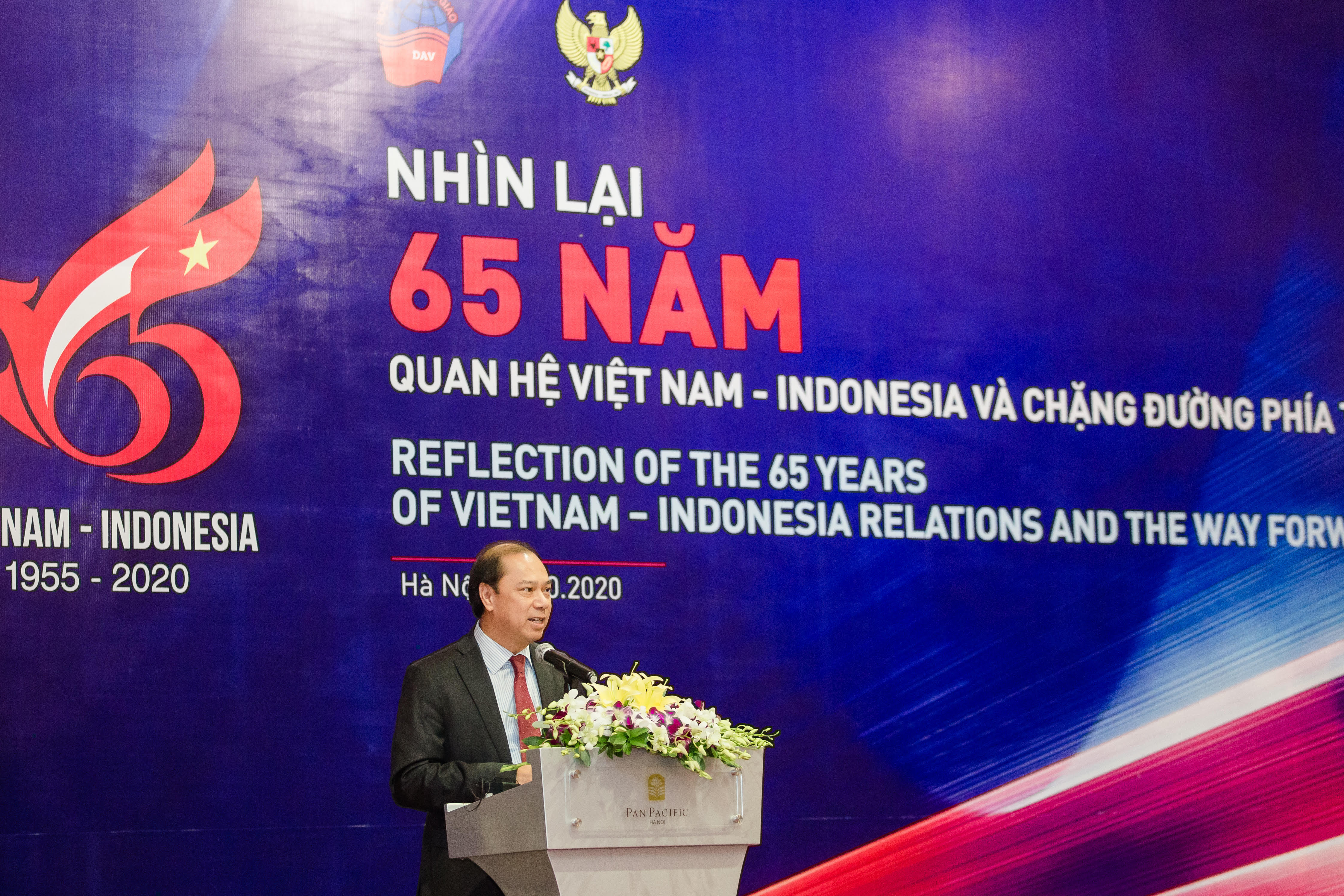 Demikianlah bapak Nguyen Quoc Dung, Deputi Menteir Luar Negeri (Menlu) Vietnam, pada lokakarya dengan tema: “Melihat kembali 65 tahun hubungan Vietnam – Indonesia dan penggalan jalan di depan” yang diadakan bersama oleh Kedutaan Besar Republik Indonesia dan Akademi Diplomatik Vietnam pada 26/10/2020 menurut bentuk Hybrid, di Kota Hanoi. Pada lokakarya ini, para pembicara menganggap bahwa penggalan jalan 65 tahun hubungan diplomatik Vietnam – Indonesia merupakan penggalan jalan yang menandai banyak event penting, dipupuk dari hubungan istimewa yang dekat antara dua pemimpin besar, yaitu Presiden Ho Chi Minh dan Presiden Soekarno. Mengalami lebih dari 6 dekade, menghadapi tantangan-tantangan kawasan dan dunia, hubungan Vietnam – Indonesia semkain menjadi erat. Hubungan kemitraan komprehensif Vietnam – Indonesia yang dijalin pada 2003 dan ditingkatkan menjadi hubungan kemitraan strategis pada 2013 telah menegaskan bahwa Vietnam dan Indonesia menghargai peran dan posisi satu sama lain di kawasan. Ketika menilai hubungan Vietnam – Indonesia, bapak Ibnu Hadi, Duta Besar Luar Biasa dan Berkuasa Penuh Indonesia untuk Vietnam mengatakan: