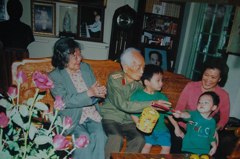Suami istri Jenderal Vo Nguyen Giap dengan anak cucunya pada Festival Bulan Purnama tahun 2008. Foto: vietnamnet.vn