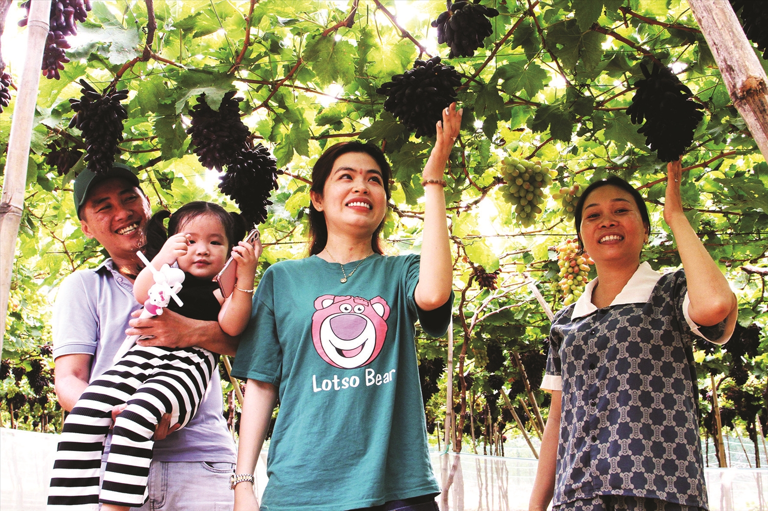 Wisatawan bersenang-senang di kebun anggur milik saudara Tri (Foto: baodantoc.vn)