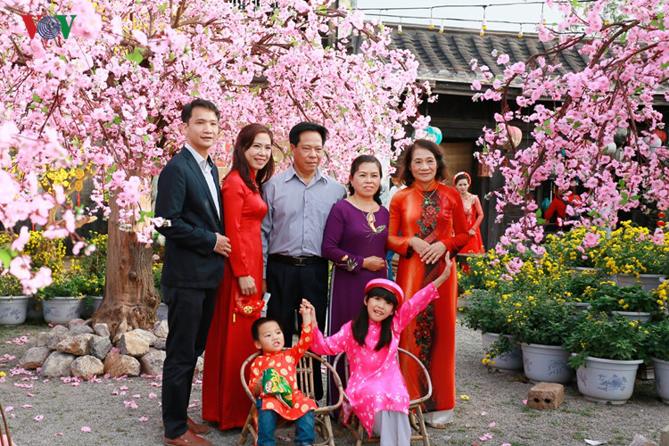 | Three generations of a family pose for New Year memento photo |