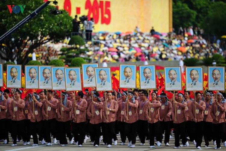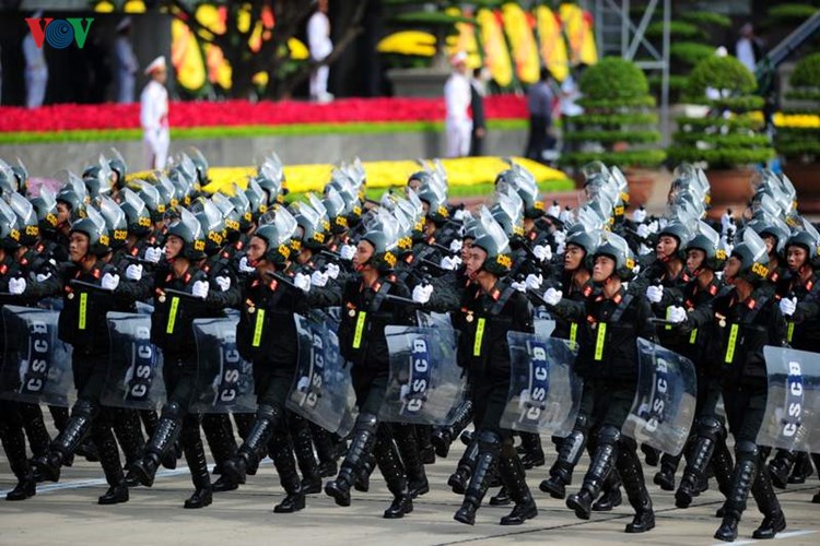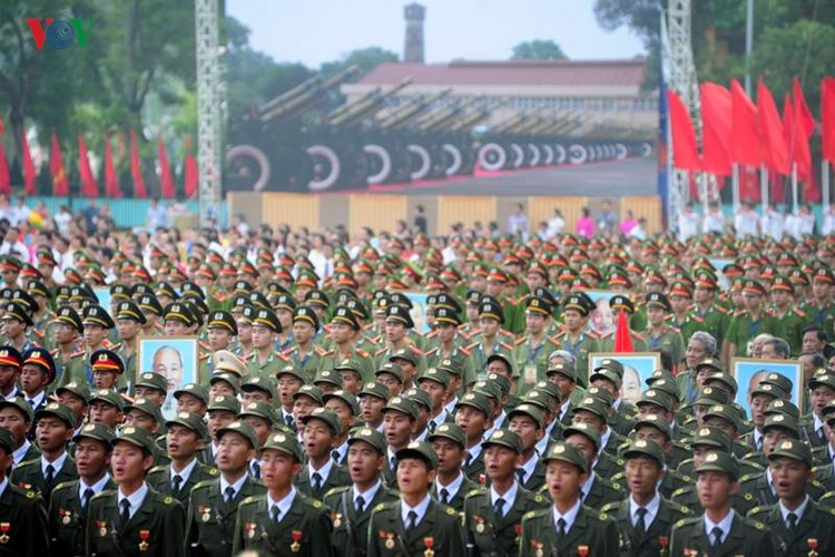 (VOVworld) - A massive military parade with the participation of around 30,000 people was held in Hanoi’s Ba Dinh Square on September 2 to celebrate the 70th anniversary of the August Revolution (August 19) and National Day (September 2). Opening the ceremony, a torch symbolizing the vitality of the people of Vietnam was brought from the Ho Chi Minh Museum to the historic Ba Dinh Square by outstanding athletes, and then lit throughout the celebration.Following the flag-raising ceremony, a 21-gun salute was fired from the Thang Long Royal Citadel to celebrate the national important anniversary. VOV captured moments of the parade: