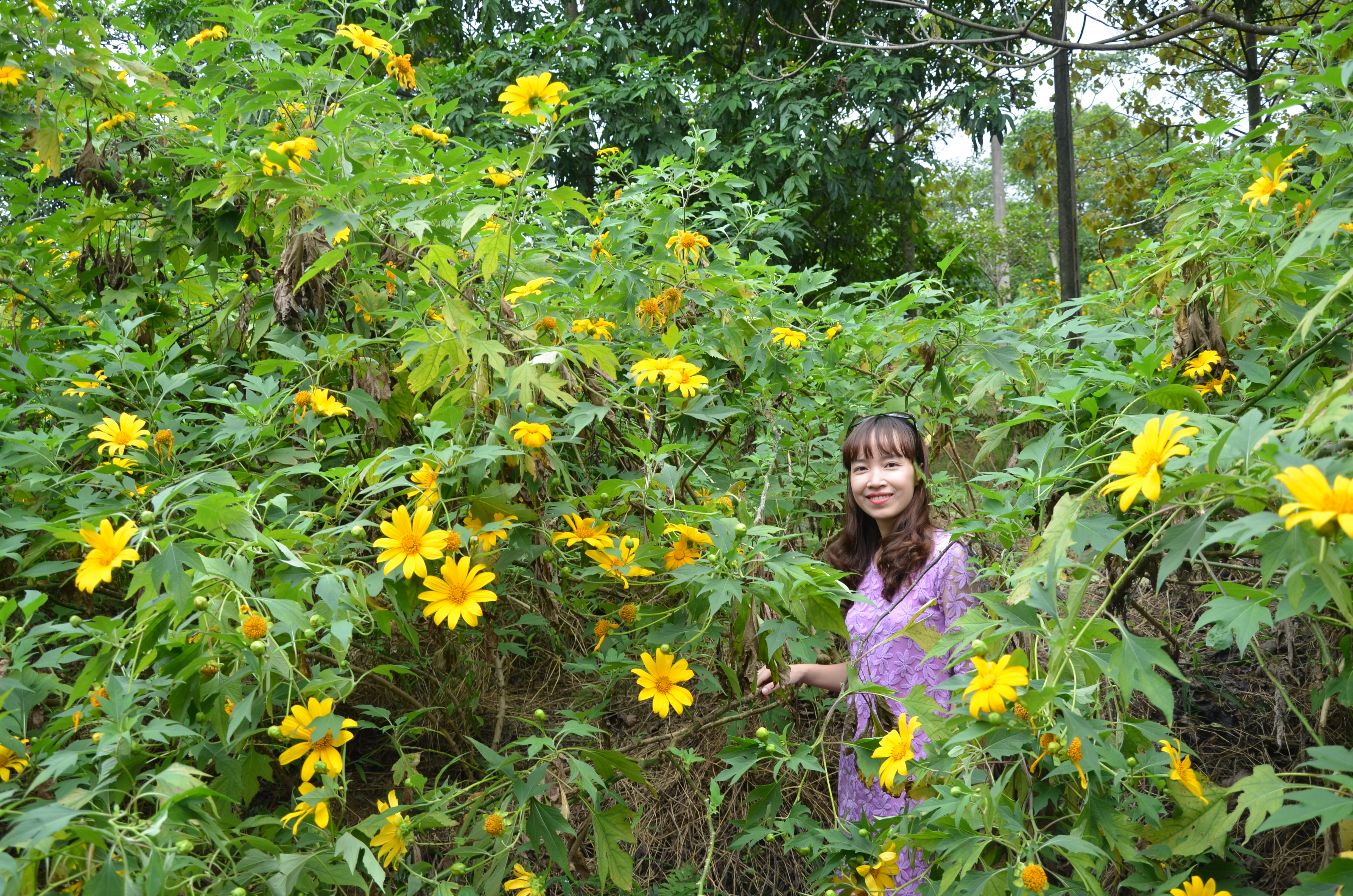 Blooming wild sunflowers create a romantic and poetic scene for Ba Vi National Park