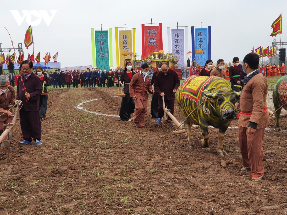 លោកប្រធានរដ្ឋ Nguyen Xuan Phuc អញ្ជើញចូលរួមពិធីច្រត់នង្គ័ល Doi Son ឆ្នាំ២០២២។ (រូបថត៖ VOV)