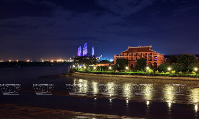 | នាពេលទីក្រុងបំភ្លឺឡោះងនារាត្រី កំពុងផែ Bach Dang ភ្លឺចិញ្ចាចនិងអ៊ូអរជាង |