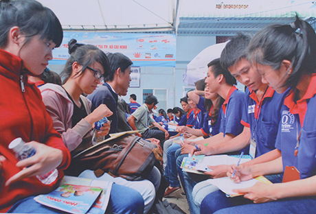 និស្សិតទីក្រុងហូជីមិញពិគ្រោះយោបល់សំរាប់ឪពុក ម្ដាយនិងបេក្ខជនក្នុងសម័យប្រឡងចូលមហាវិទ្យាល័យ-សាលាជាន់ខ្ពស់