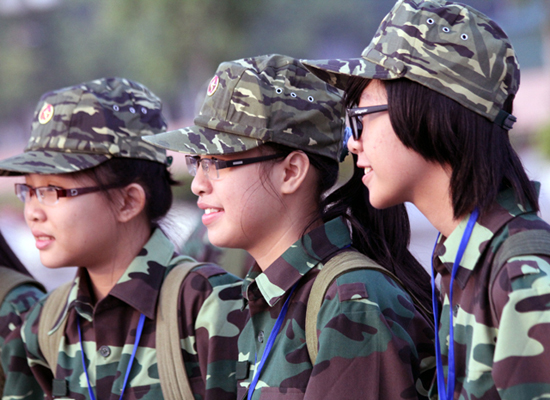 | បណ្ដាសិក្ខាកាមនារីជ្រួលជ្រាល់ចូលរួមវគ្គសិក្សាយោធា។ |