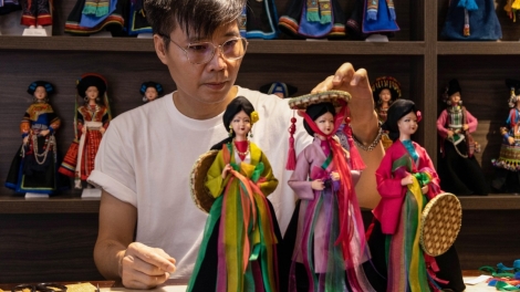 (VOVWORLD) - 하노이 출신 응우옌 호앙 아인(Nguyễn Hoàng Anh) 화가는 섬세하고 정교한 손길로 베트남의 다양한 소수민족 전통의상을 입은 인형을 만들어 왔다.