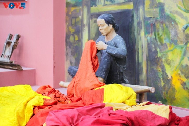 전시 공간에는 경계선 깃대에 걸린 조국의 깃발을 묵묵히 깁는 꽝찌성 빈린(Vĩnh Linh) 지역의 한 어머니의 모습이 재현되어 있다.