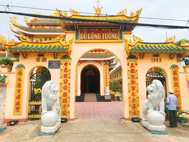 도꽁뜨엉 (Đỗ Công Tường) 부부 사원 유적지는 사원, 객실과 웅장한 묘기를 포함하는 건축 단지이다. 이 유적지는 응우옌 (Nguyễn) 왕조 건축 양식 및 남부 지방의 사원과 서낭당 특징이 담겨 있다. 사원은 민간 전통건축 양식으로 건립되고 지붕은 전통 기와로 되어 있다. 사원의 각각 기둥에는 도꽁뜨엉 (Đỗ Công Tường) 부부의 공을 기리는 대구 (對句)가 걸려 있다. 모든 책봉서, 대구 및 편액은 동탑 (Đồng Tháp)성의 한문 (漢文) 및 놈 (喃) 문자 유산 목록에 속한다. 삼관문을 지나가 사원의 넓은 마당이 보인다. 거기에는 귀신을 쫓아내고 사람들에게 평안을 가져주는 기품있는 신상 (神像)들이 자리잡고 있다. 도꽁뜨엉 (Đỗ Công Tường) 부부를 모시는 공간은 사신수 (四神獸) 및 양용쟁주 (兩龍爭珠)와 같은 정교한 문양으로 조각되어 있다. 도꽁뜨엉 (Đỗ Công Tường) 부부 사원 관리위워회 리반때우 (Lý Văn Tèo) 관리자는 다음과 같이 밝혔다.