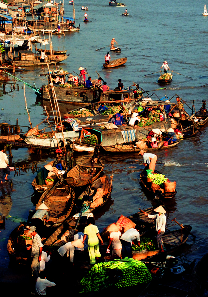 옛날에는 바라 (ba lá), 남라 (năm lá), 땀반 (tam bản)이라는 전통적인 배를 타고 다녔으나 현재는 모터보트가 많으며 수상 주유소도 생겼다. 뱃사공들은 마치 예술적으로 노를 저어 수 백 척의 배들 틈을 부딪히지 않고 지나간다. 닌끼에우 (Ninh Kiều) 계류장에서 관광선 자영업을 하는 응우옌 티 응옥 응아 (Nguyễn Thị Ngọc Nga) 씨는 다음과 같이 밝혔다.