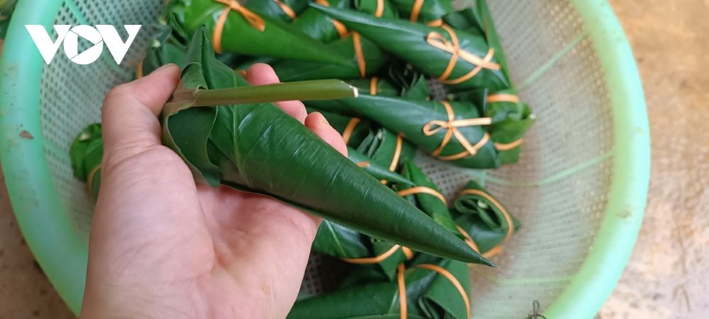 대나무 줄을 묶은 뒤 떡을 찬물에 넣어야 떡이 충분히 물을 흡수할 수 있습니다. 이렇게 하면 삶을 때 떡이 빠르고 고르게 익을 수 있습니다. 꼬옥모 떡은 각 3개씩으로 꿰어져 있고 냄비에 넣고 약 2시간 정도 삶으면 잘 익게 됩니다. 익은 떡은 바나나 잎의 연한 녹색이 되는데, 씹을수록 찹쌀의 향기롭고 고슬고슬한 맛이 느껴집니다. 커오말렉(Khẩu nua lếch)종의 찹쌀을 사용하면 떡 향기가 더 좋습니다. 각 가정의 취향에 따라 떡을 만들 때 찹쌀을 땅콩이나 녹두와 섞어서 만들 수 있습니다. 단것을 좋아하면 떡을 꿀이나 설탕에 찍어서 먹는 게 좋습니다.