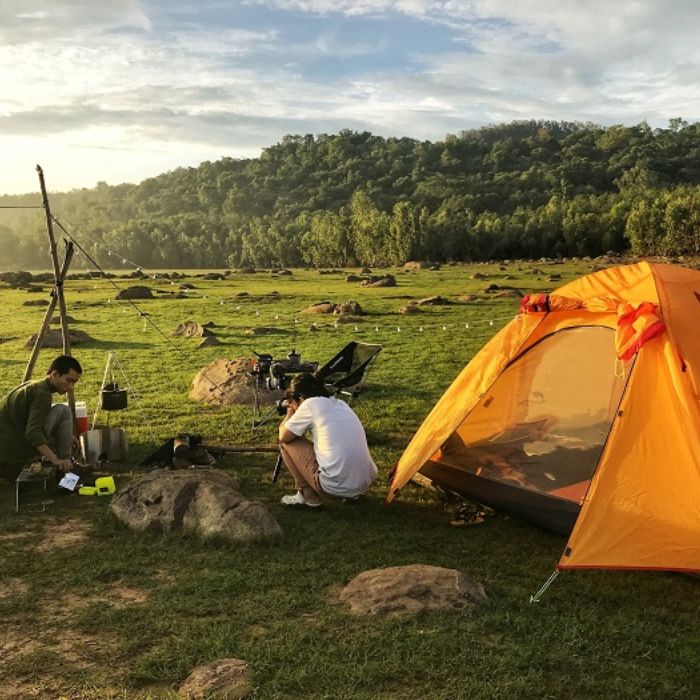 B: 야간 캠핑을 하고 일몰을 감상하는 것을 좋아하시는 분들에게는 빈뚜이(Vĩnh Tuy) 다리 아래에 있는 캠핑장을 추천해 드리고 싶습니다. 이곳은 하노이 중심에서 약 10km 정도로 꽤 가까우니까 이동하시기도 편리하겠죠. 지인분들과 야간 캠핑 하시면서 낚시도 하고 맛있는 바비큐도 즐기실 수 있습니다.