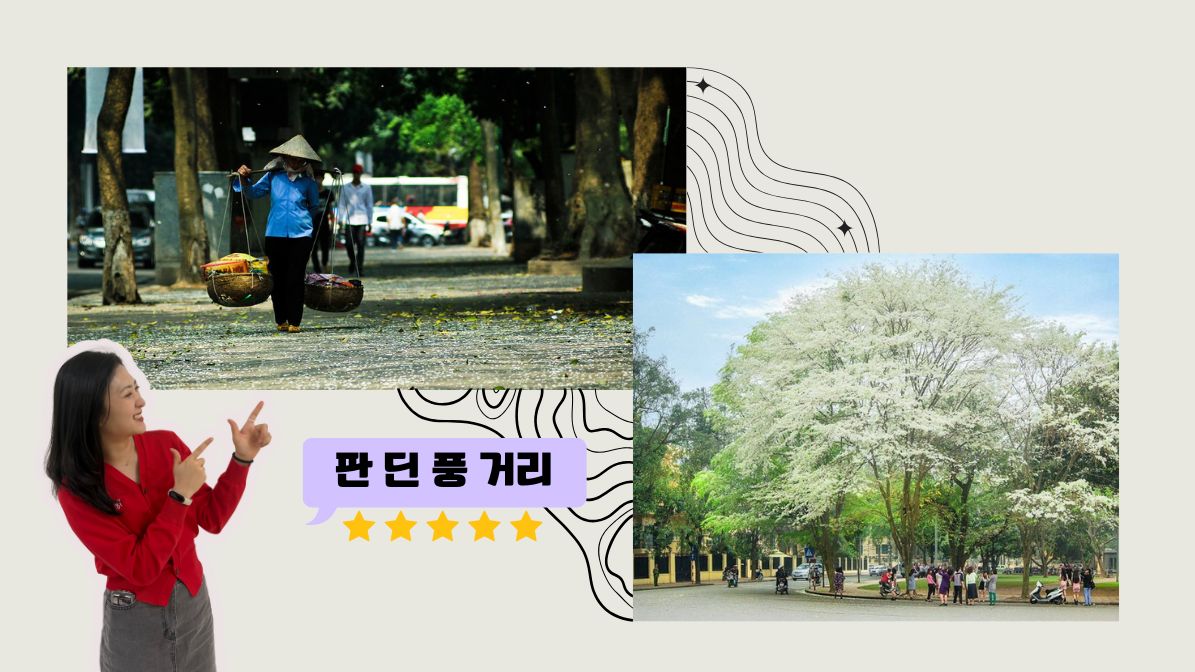 지엡: 다음으로 소개할 곳은 바로 판 딘 풍 거리입니다. 이곳은 오래전부터 하노이에서 가장 낭만적인 거리로 손꼽혀 왔고, 특히 스어꽃 시즌이 되면 더욱 아름다워져요. 산책을 즐기거나 사진을 찍기에 완벽한 장소랍니다!
