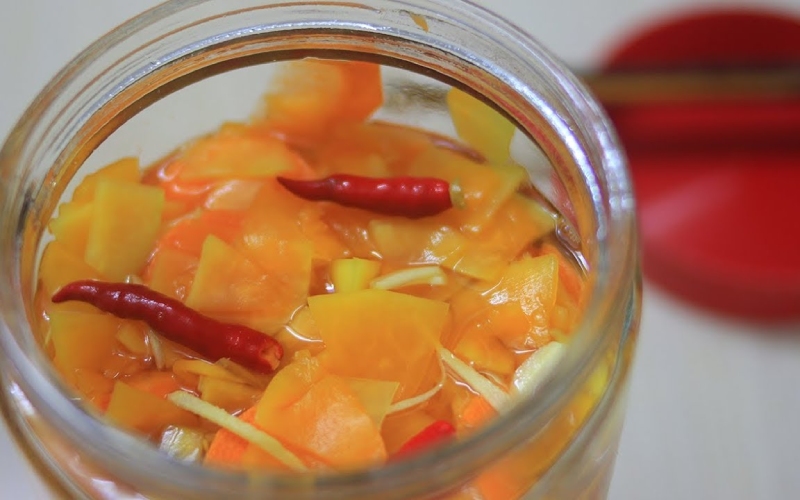 설날에 고기, 반쯩 그리고 기름진 음식을 너무 많이 드시면 질리고 싫증나기 쉽지요. 이때 새콤달콤한 파파야 절임과 함께 드셔 보세요. 상큼하고 개운한 맛에 매료되실 거예요.