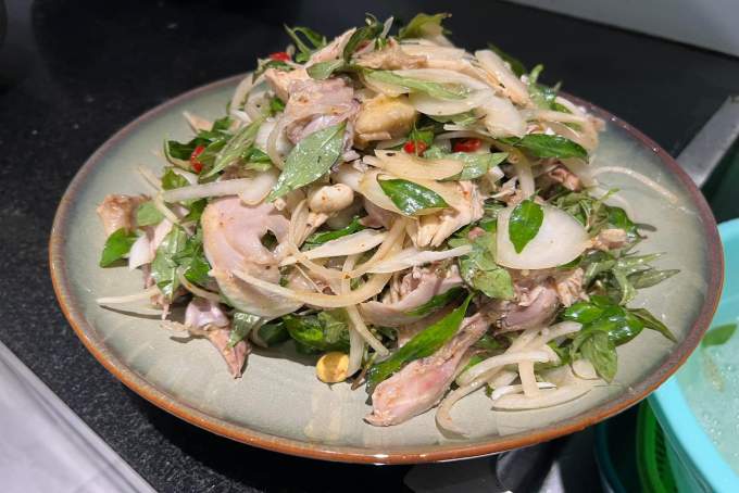 B: 마지막으로 소개하고 싶은 음식은 바로 ‘분탕’입니다. 분탕은 하노이 가정을 비롯한 베트남 사람들에게는 익숙한 음식이라고 할 수 있습니다. 이 음식은 닭고기, 얇게 썬 조루어 (giò lụa, 다진 돼지고기를 바나나 잎으로 싸서 삶은 음식) 등 설날 밥상에 빠질 수 없는 재료로 만들어집니다. 설 연휴 동안 단백질이 많은 음식을 자주 먹게 되면 담백하고 가벼운 음식이 더 당길 것 같죠?
