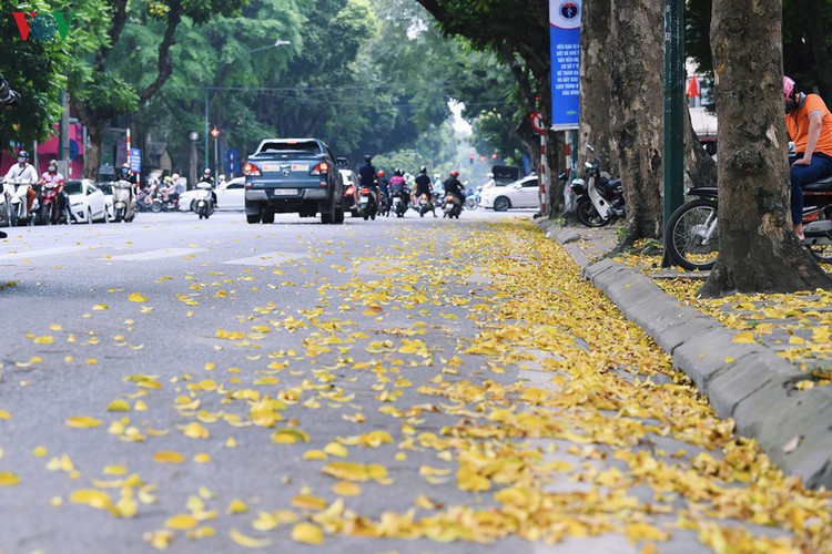 Many streets in Hanoi are covered in the gold-coloured leaves during the last days of April
