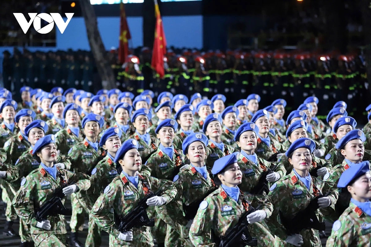 The event featured the participation of 38 marching units including 25 from the Army, 13 from the Police, and 25 from the militia along with parade units from the Lao People’s Armed Forces and the Royal Cambodian Army, and 12 parade units of social organizations. (photo: VOV)