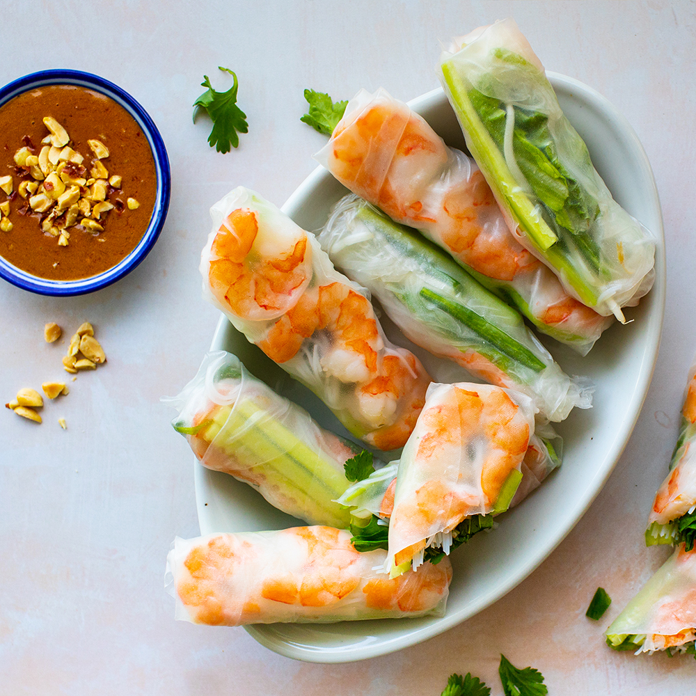 A: Fresh summer rolls are a popular snack consisting of rice paper wrapped around pork, shrimp, herbs, and rice vermicelli, and dipped in a sweet and sour fish sauce or a thick peanut dip. CNN recently listed Vietnam’s fresh summer rolls among the world’s 50 best dishes. Gourmet magazine's description sums them up nicely: "a salad packed into an edible container".