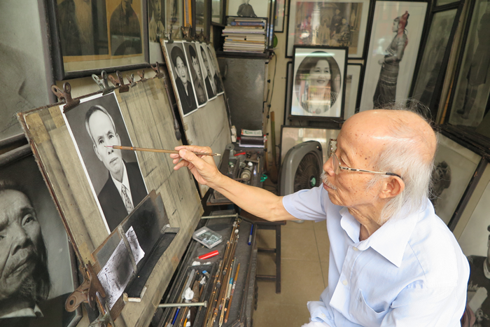 B: The Sunday Show also introduced a street where portraits are painted. An interesting interview discussed how portrait art flourished in Hanoi during the 1960’s and 1970’s, according to Richard. Now portraiture is on the brink of disappearing due to digital photography. Richard said he hopes people will rediscover an appreciation for portrait painting. They are much more interesting than digital photography.