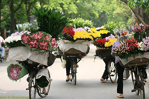 B: A few years ago, you might spot women wearing the iconic palm-leaf conical hats and carrying bamboo baskets on their bicycles to sell sticky rice, corn, bread, vegetables, steamed cakes, noodles and other Vietnamese specialties. The baskets were fastened to the saddles of their bicycles with rope. Nowadays, bicycle vendors are rarely seen in big cities because they have upgraded to electric bikes or motorized cyclos.