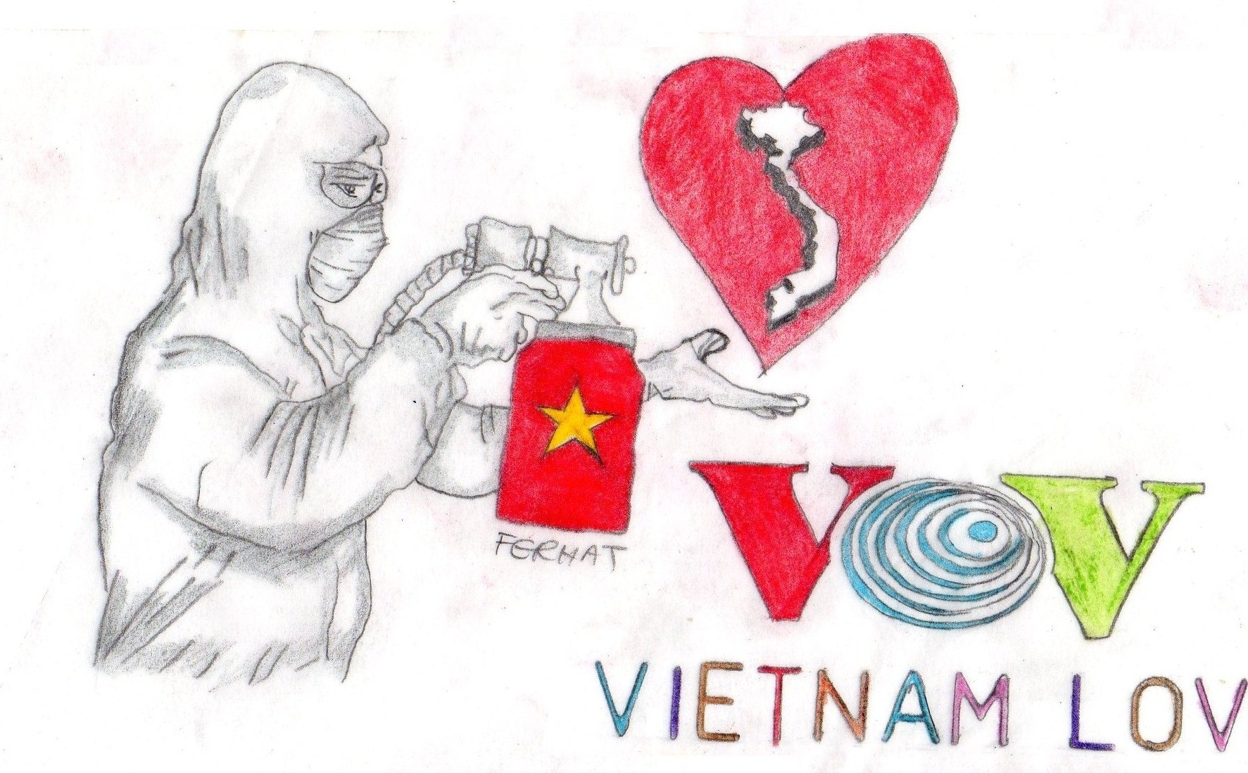 A: Thank you very much Mr. Tokon for sharing your story with us. Mr. M Ferhat Bezazel of Algeria sent us some beautiful pencil drawings. He wrote: “ Like flowers in my heart, cordial greetings from Algeria. I hope you are doing well. I like the special award you added to this year’s “What do you know about Vietnam?” contest. Because this year’s contest takes place amid a pandemic, the organizers will award a special prize for the most impressive story or impressive slogan about Vietnam’s success fighting COVID-19. Because I’m an Algerian artist I have made these pencil drawings about Vietna’s efforts to contain COVID-19. I hope you like them and I will win.”