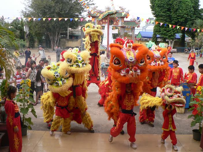 A: In Vietnam, a lion or unicorn dance is a joyful entertainment at Tet festivals and other events. Well-to-do families pay a Unicorn Dance team to come and dance at the opening ceremony of a new business or in front of their house as the first caller on New Year's Day. The Unicorn, a symbol of power and prosperity, is believed to protect the family and help their business prosper.