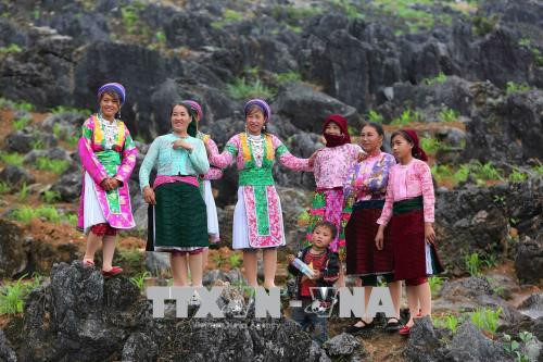 Mong girls in traditional costume at Khau Vai Love Market (Photo: VNA)
