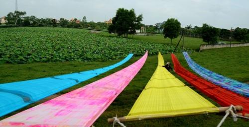 A: The Red River delta has good soil for growing mulberries to feed silkworms whose cocoons are turned into silk. Nha Xa silk village sits on the left bank of the Red River. For centuries Nha Xa silk has been VN’s most famous silk.