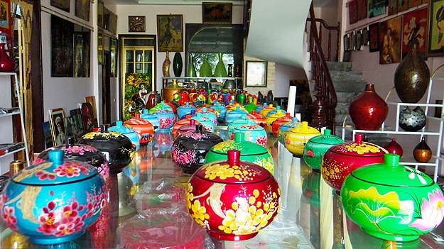 B: Lacquer painting is considered a national art in Vietnam. Now there are many lacquer classes where amateurs can make their own lacquer paintings or lacquerware such as trays, bowls, boxes, and jewellery.