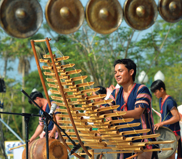 A: Many traditional musical instruments like flutes and the T' Rưng are made from bamboo.