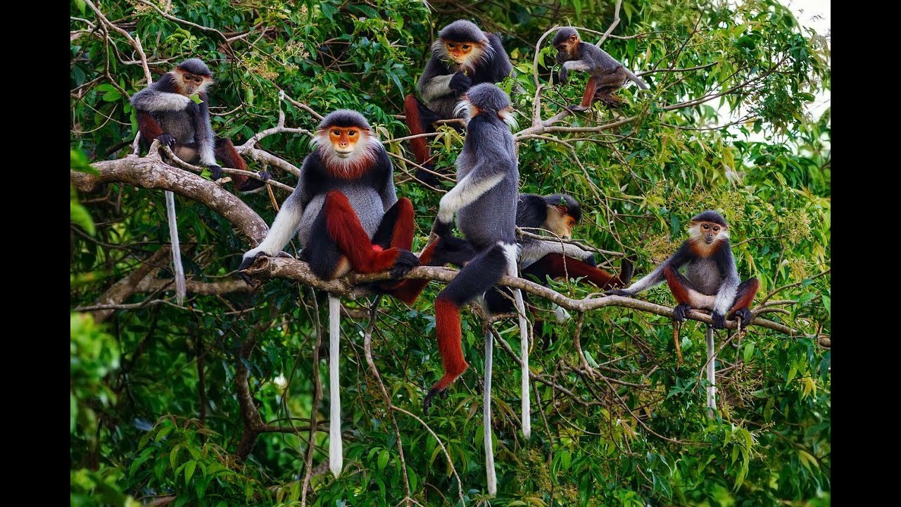 Rred-shanked douc in Son Tra mountain, Da Nang city.