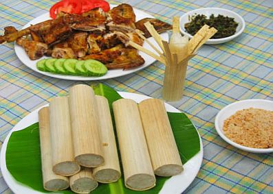 A: Burned rice is famous in Ninh Binh province and several other localities. The crispy rice burnt at the bottom of the pot is more delicious when served with a special soup or salted shredded meat. Bamboo rice is sticky rice stuffed with water into bamboo tubes and then fried. Bamboo rice is a specialty of minority people in the mountainous provinces of Vietnam.