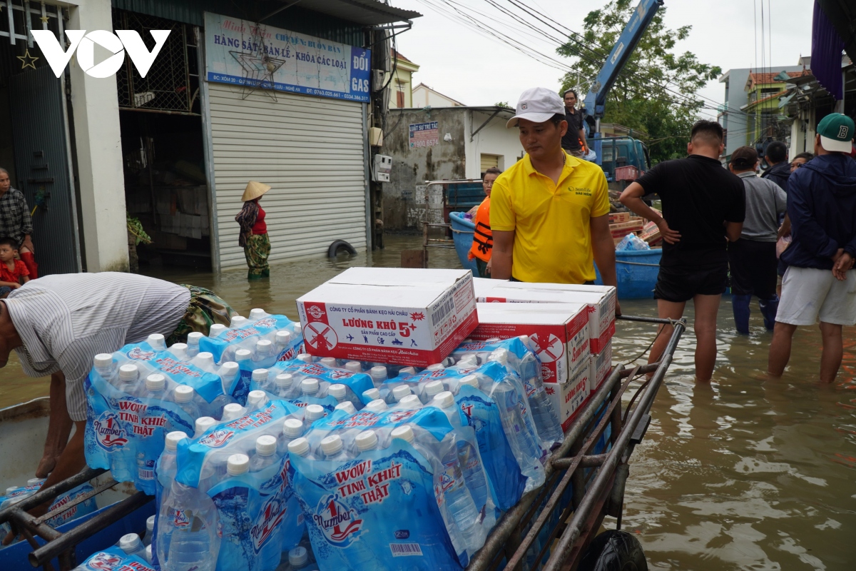 B: The Vietnam Red Cross Society has sent emergency aid to flood victims in the two provinces. Many businesses have sent water filters and other items to flood-hit families.