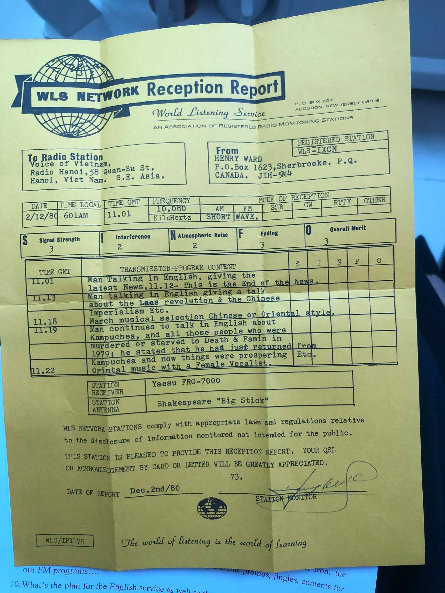 A: Md. Jahangir Alam of Bangladesh shared his joy listening to a special program marking VOV’s Englishg service’s 75th anniversary this week. He wrote: “Today at 10.00 hours UTC I heard the special program for the 75th birthday of the English Service. I was able to hear the voice of old announcers making me to travel back to 40 years when I used to listen to in the 80's. The special program I listened to was one of the most memorable programs on VOV. Thanks for giving the opportunity to share the experience of Ex-staff. With me is now the old QSL dated June 11, 1982 received while I was studying in college. Your staff members are hardworking which made you successful in all fields. Wish you all success.”