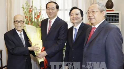 (vovworld) - ຕອນເຊົ້າວັນທີ 26/01 ທ່ານປະທານປະເທດ ເຈີນດ້າຍກວາງ ໄດ້ໄປຢ້ຽມຢາມ, ອວຍພອນບຸນເຕັດ ຢູ່ເຮືອນຂອງທ່ານສາດສະດາຈານ, ນັກວິລະຊົນແຮງງານ ຫວູຄຽວ.