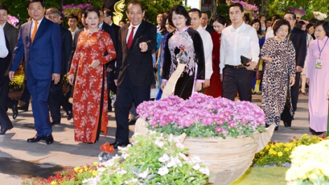 ປະທານສະພາແຫ່ງຊາດເຂົ້າຮ່ວມພິທີໄຂຖະໜົນດອກໄມ້ຫງວຽນເຫ້ວຍາມບຸນເຕັດປີລະກາ2017