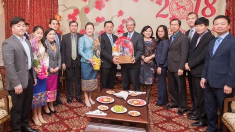 (VOVWORLD) - ເນື່ອງໃນໂອກາດປີໃໝ່ ແລະ ບຸນເຕັດຂອງ ຫວຽດນາມ, ທ່ານເອກອັກຄະລັດຖະທູດ ລາວ ປະຈຳ ອາເມລິກາ ໄມ ໄຊຍະວົງ ແລະ ພັນລະຍາ ພ້ອມດ້ວຍພະນັກງານ, ພາລະກອນສະຖານທູດ ລາວ
