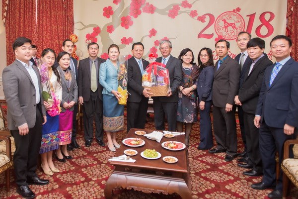 ໄດ້ໄປອວຍພອນທ່ານເອກອັກຄະລັດຖະທູດ ຫວຽດນາມ ປະຈຳ ອາເມລິກາ ຟ້າມກວາງວີງ, ພ້ອມດ້ວຍພັນລະຍາ ແລະ ໝູ່ຄະນະສະຖານທູດ ຫວຽດນາມ. ນີ້ແມ່ນການເຄື່ອນໄຫວທີ່ເປັນມູນເຊື້ອ, ສະແດງໃຫ້ເຫັນຄວາມຜູກພັນ, ສະໜິດສະໜົມລະຫວ່າງ 2 ສະຖານທູດ ຫວຽດນາມ ແລະ ລາວ ຢູ່ນະຄອນຫລວງ ວໍຊິງຕັນ.
